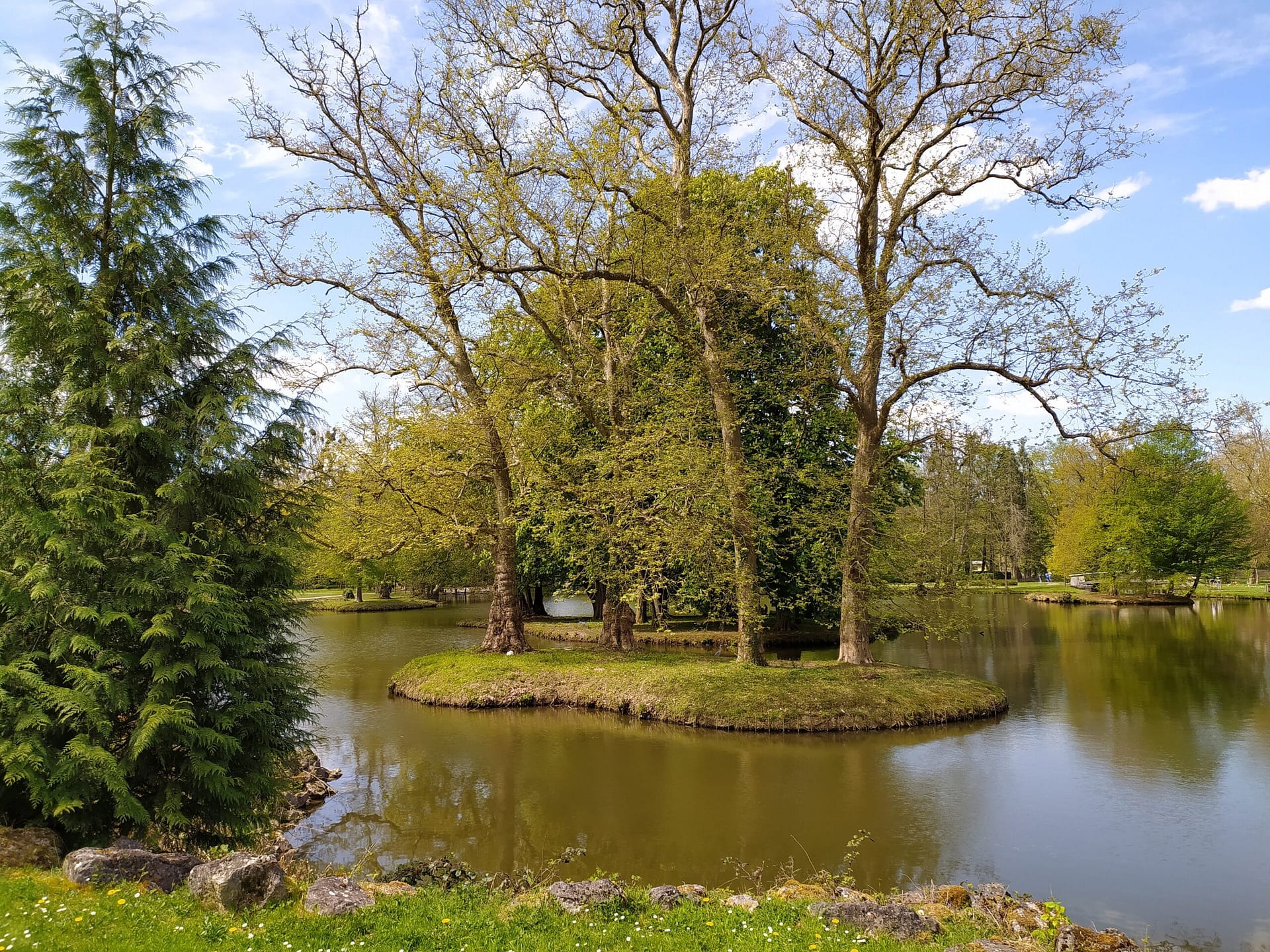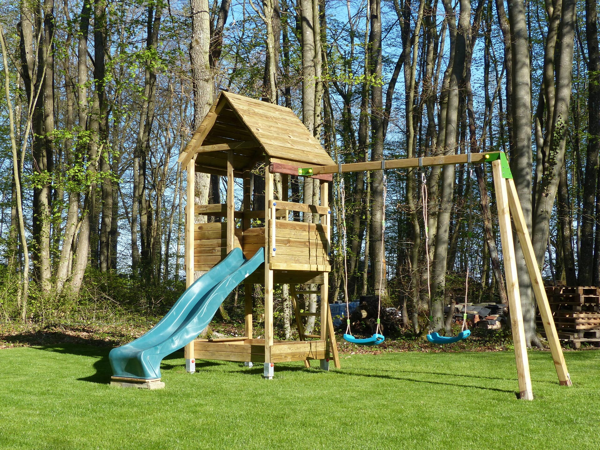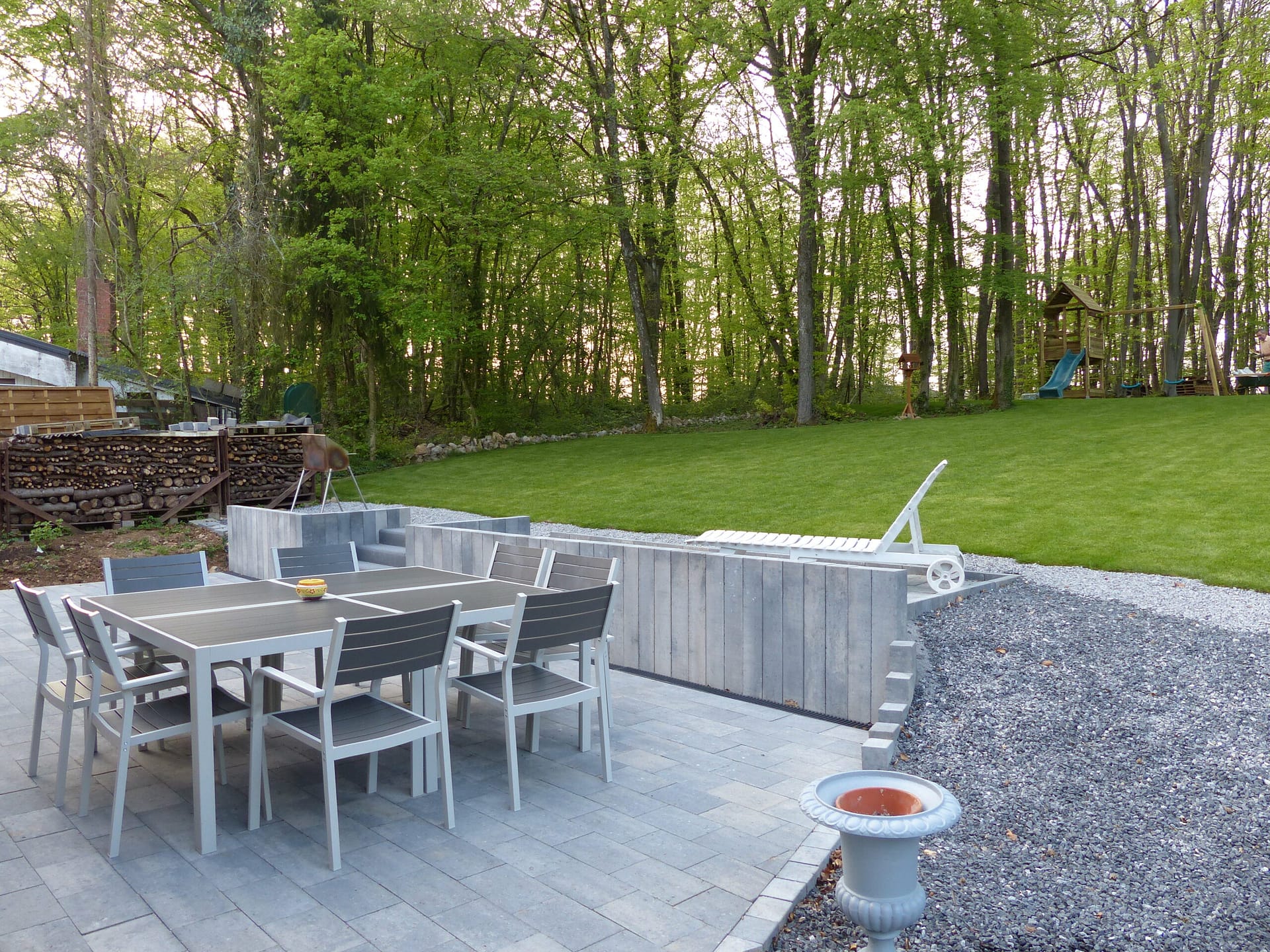 Een grote tuin met veel spelletjes
